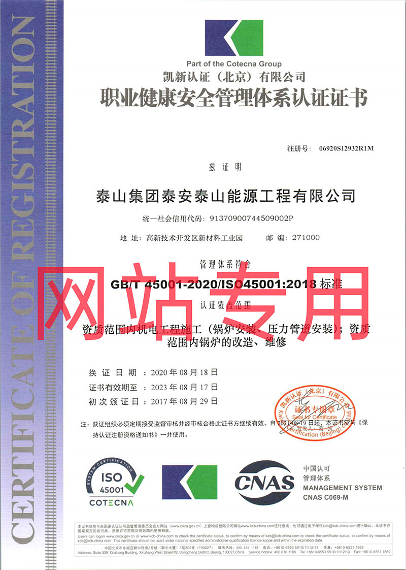 職業(yè)健康安全管理體系認(rèn)證證書(shū)